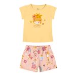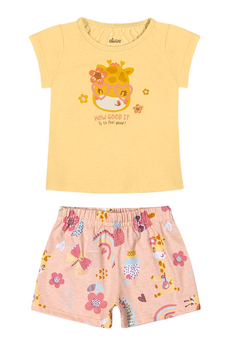 • Conjunto composto por blusa e short • Feito em meia malha • Possui mangas curtas • Possui estampa de girafa • Possui elástico no cós • Ideal para momentos em família