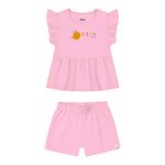 • Conjunto composto por blusa e short • Feito em cotton leve e malha texturizada • Possui mangas curtas com franzidos • Possui estampa de abelha com efeito puff e glitter • Possui elástico no cós • Ideal para passeios e momentos de lazer em família