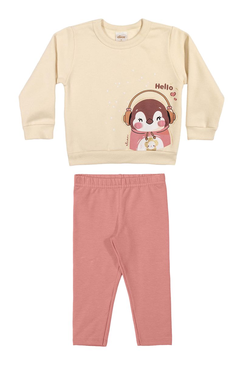 • Conjunto composto por blusão e calça legging • Feito em moletom felpado e molecotton felpado • Possui mangas longas • Estampa de pinguim com brilhos • Detalhe em pompom • Elástico no cós • Ideal para dias em casa e momentos de lazer