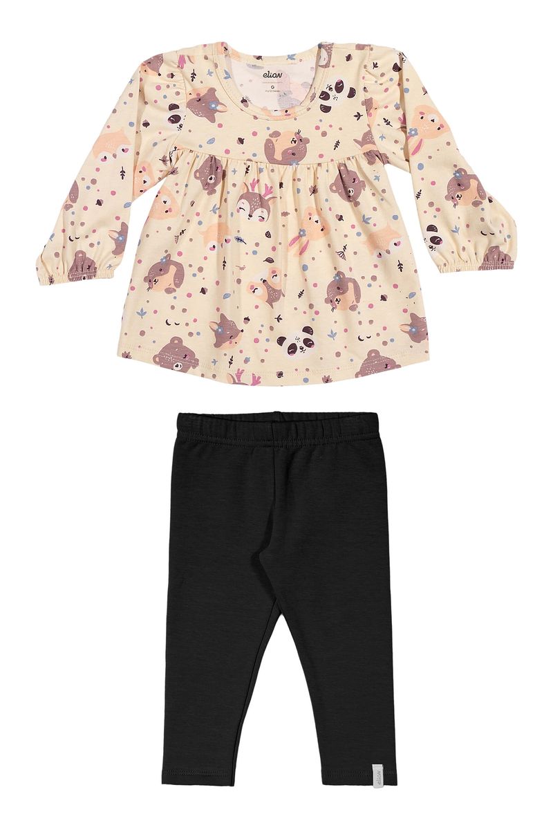 • Conjunto composto por blusa e calça legging • Feito em cotton leve • Possui mangas longas • Estampa com bichinhos • Elástico no cós • Ideal para passeios e momentos de diversão
