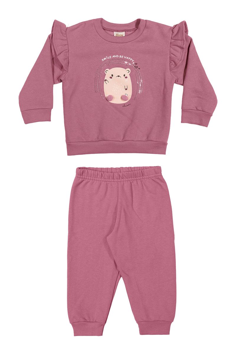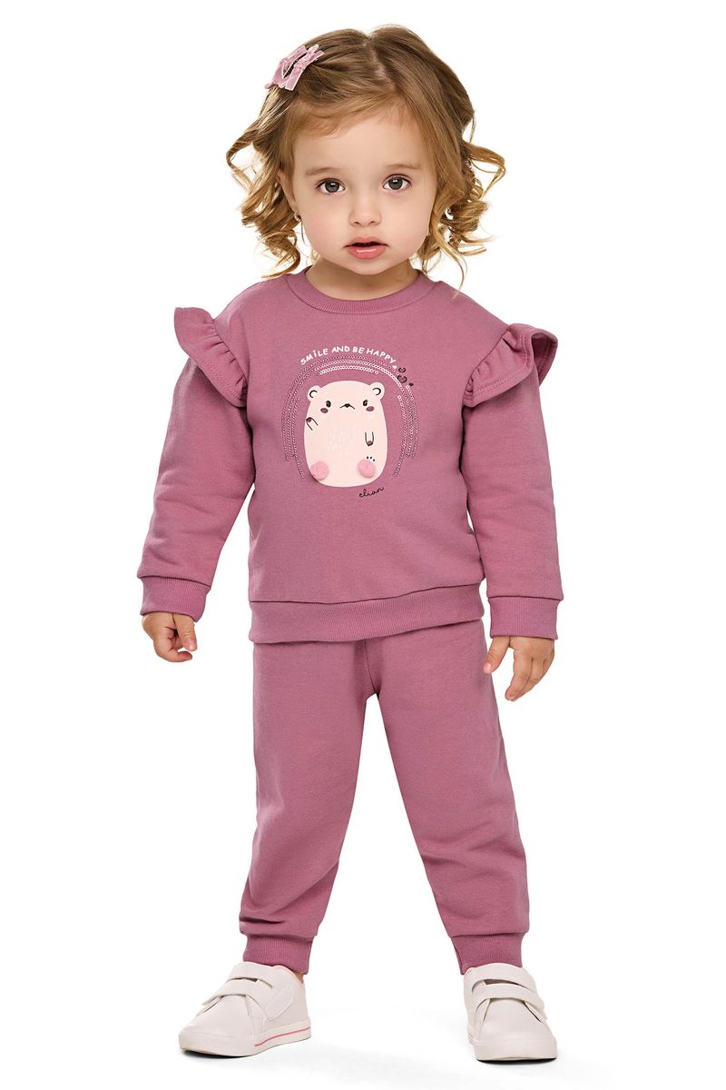 • Conjunto composto por blusão e calça • Feito em moletom felpado • Possui mangas longas com babados nos ombros • Estampa de ursinho com aplique de pompons • Bordado com lantejoulas • Elástico no cós • Ideal para o dia a dia e momentos de aconchego