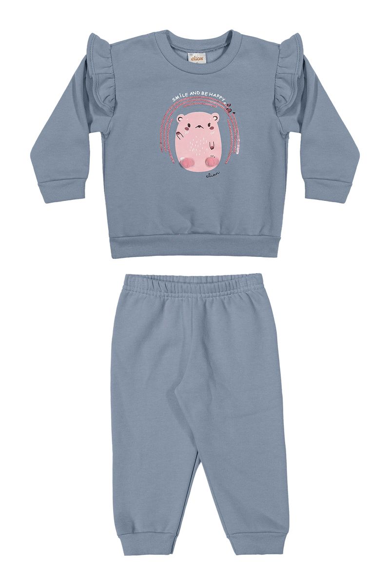• Conjunto composto por blusão e calça • Feito em moletom felpado • Possui mangas longas com babados nos ombros • Estampa de ursinho com aplique de pompons • Bordado com lantejoulas • Elástico no cós • Ideal para o dia a dia e momentos de aconchego