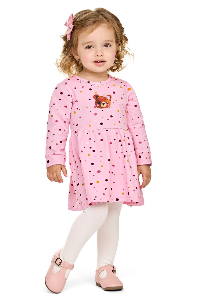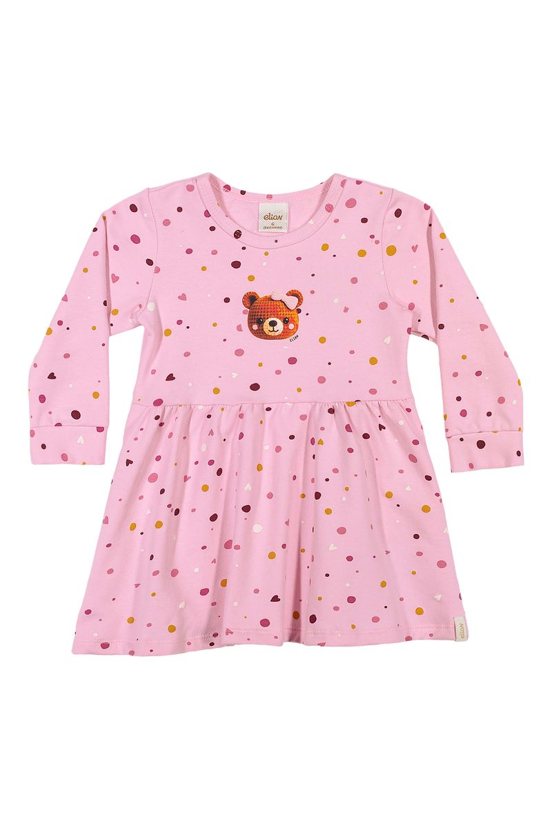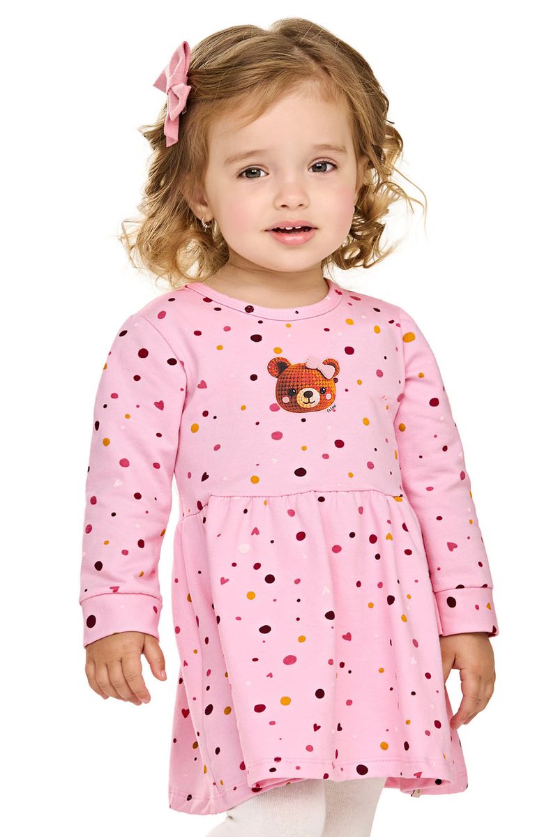 • Feito em molecotton felpado • Modelagem soltinha • Possui mangas longas • Estampa de poás e ursinha • Ideal para passeios, festinhas e momentos especiais