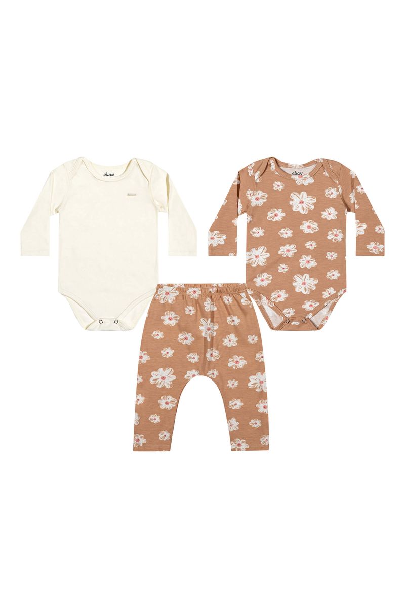 • Kit composto por 2 bodies e 1 calça • Feito em cotton leve • Possui mangas longas • 1 body estampado • 1 body com estampa lisa • Abertura em botões de pressão • Elástico no cós • Ideal para o dia a dia
