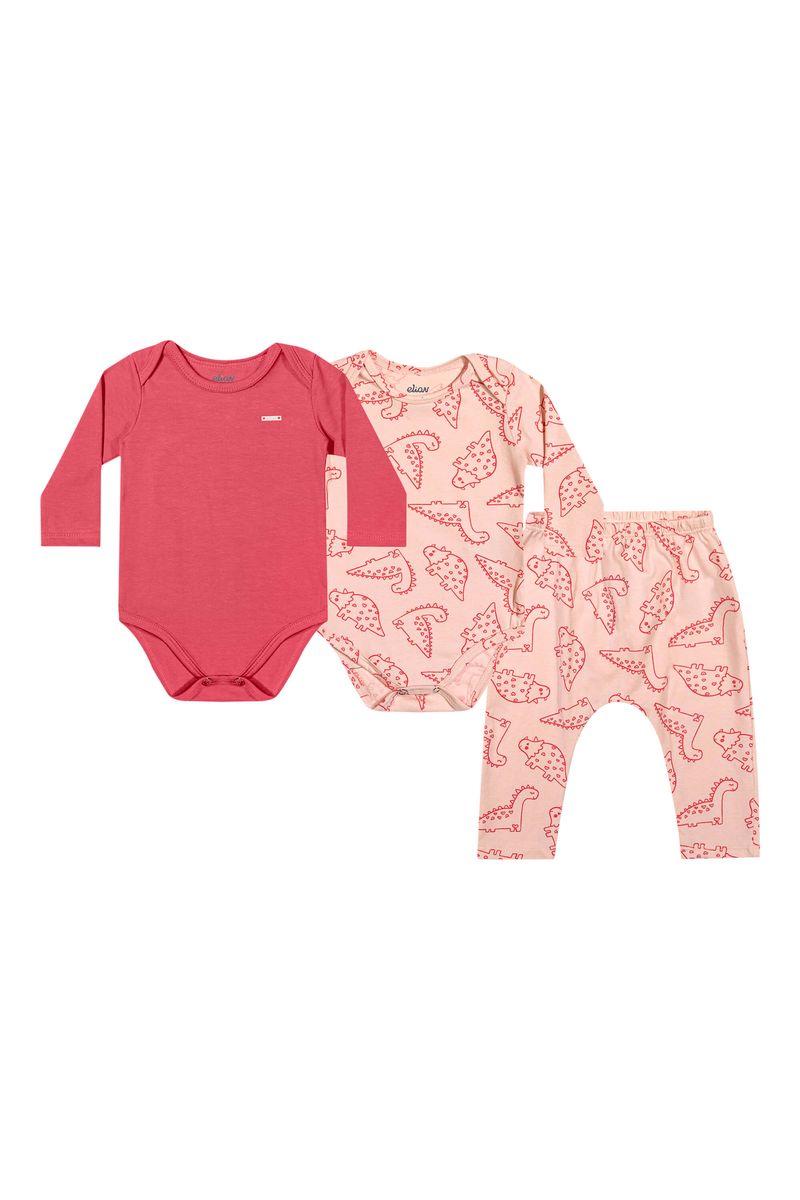 • Kit composto por 2 bodies e 1 calça • Feito em cotton leve • Possui mangas longas • 1 body estampado • 1 body com estampa lisa • Abertura em botões de pressão • Elástico no cós • Ideal para o dia a dia