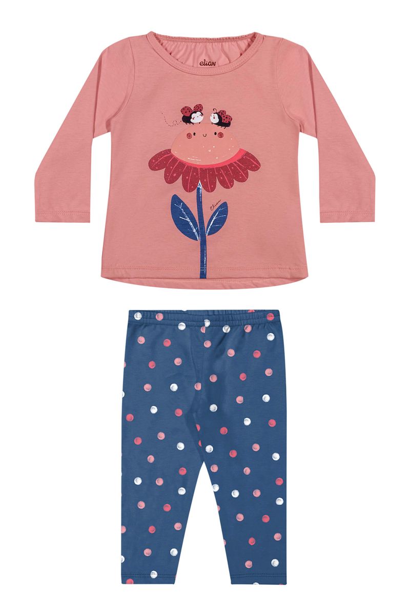 • Conjunto composto por blusa e calça legging • Feito em meia malha e cotton leve • Possui mangas longas • Estampa frontal • Elástico no cós • Ideal para dia a dia e momentos de brincadeiras