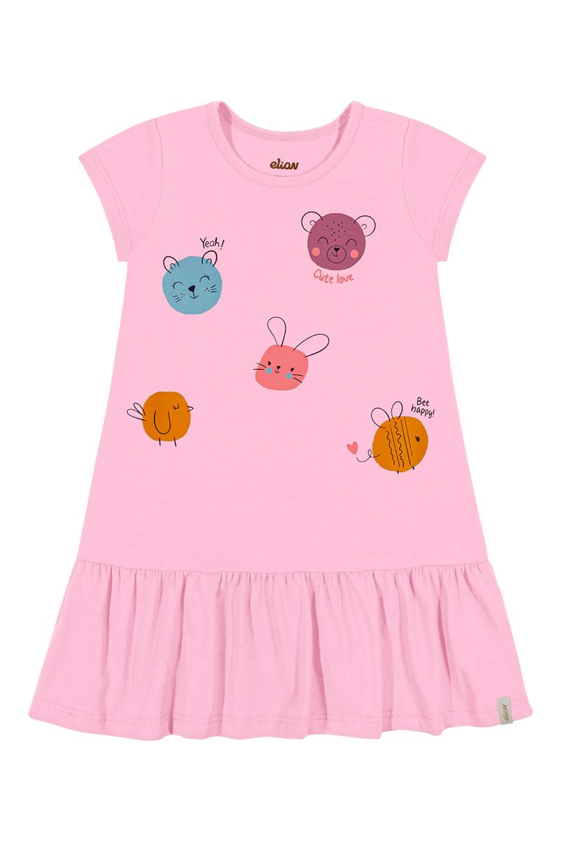 Vestido Bebê Menina Poás Bichinhos Elian Rosa REF: 211701-4059