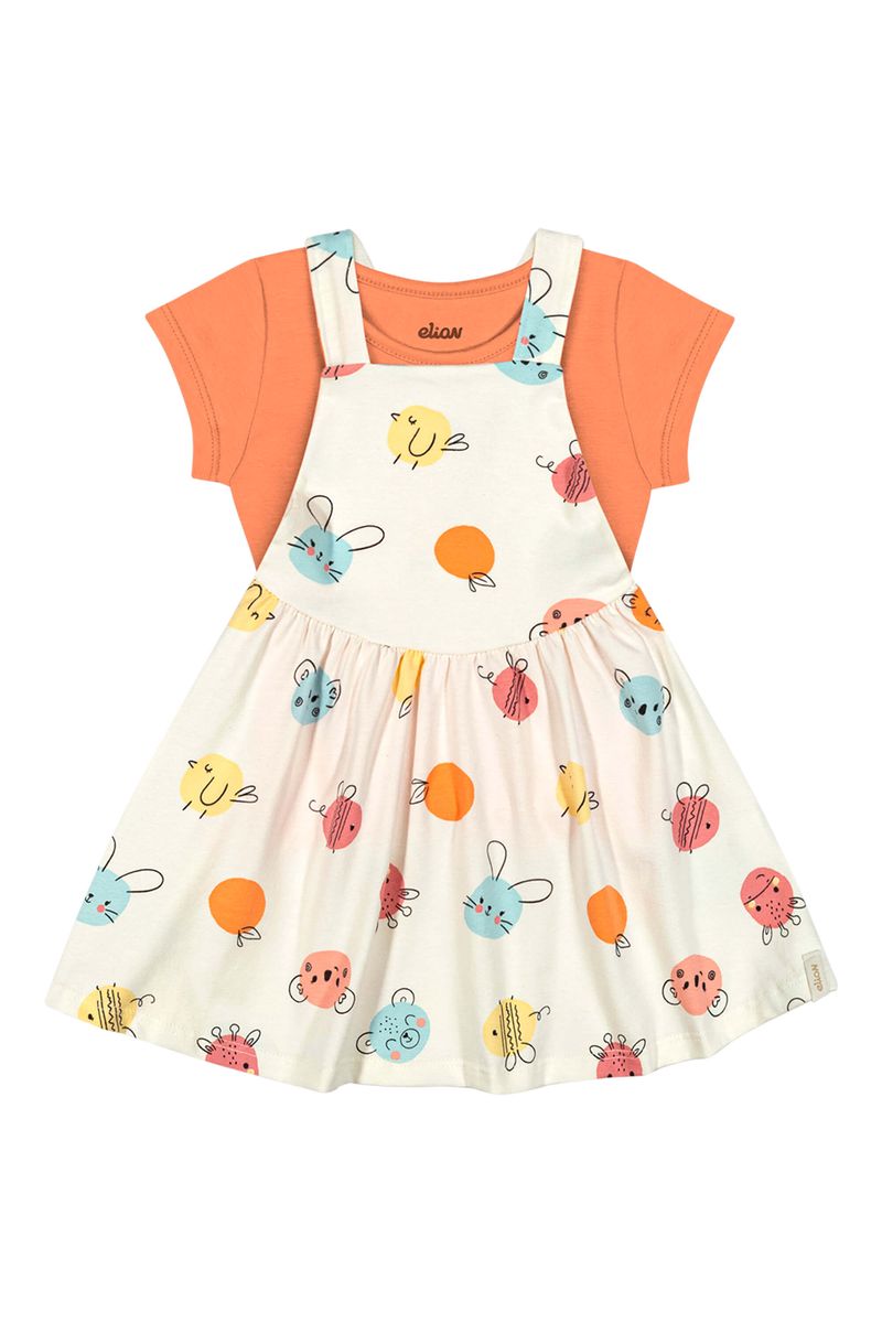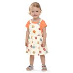 • Conjunto composto por blusa e salopete • Feito em cotton leve • Blusa com mangas curtas • Salopete com alças transpassadas • Possui elástico nas costas • Possui estampa divertida de poá com bichinhos e frutinhas • Ideal para passeios e momentos de lazer em família