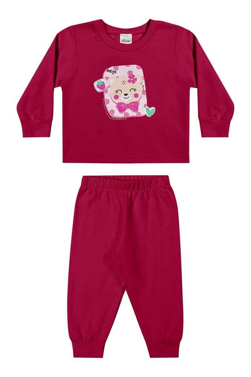 • Conjunto composto por blusão e calça • Feito em moletom felpado • Possui mangas longas • Estampa com bichinhos • Elástico no cós • Ideal para dia a dia e brincadeiras