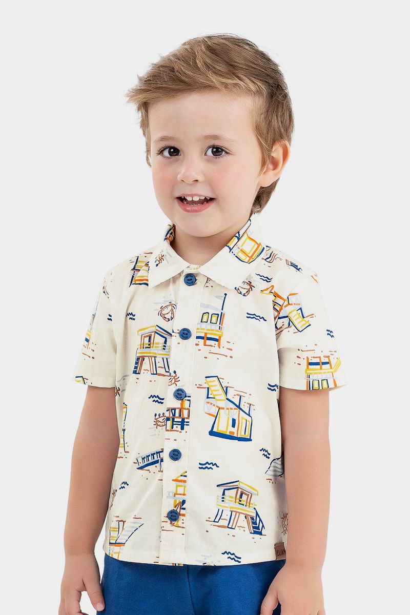 Camisa Infantil Menino Praia Estampada Elian Bege REF: 221504-2039