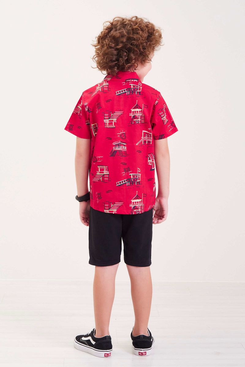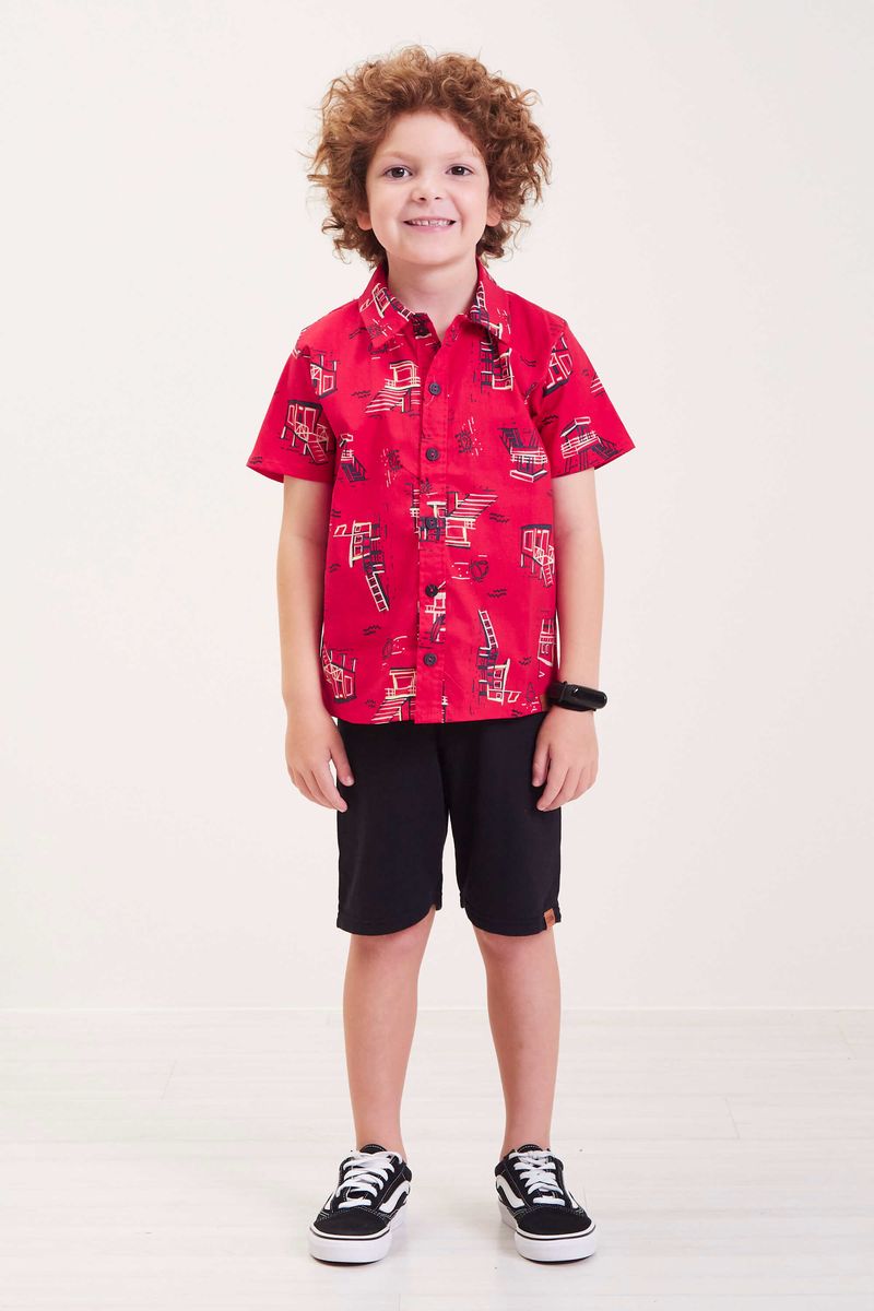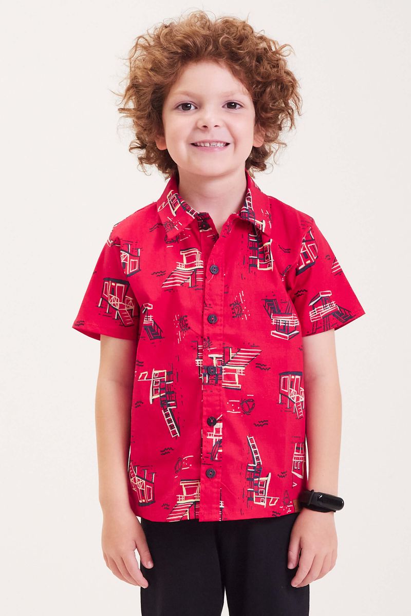 Camisa Infantil Menino Praia Estampada Elian Vermelha REF: 221504-4580