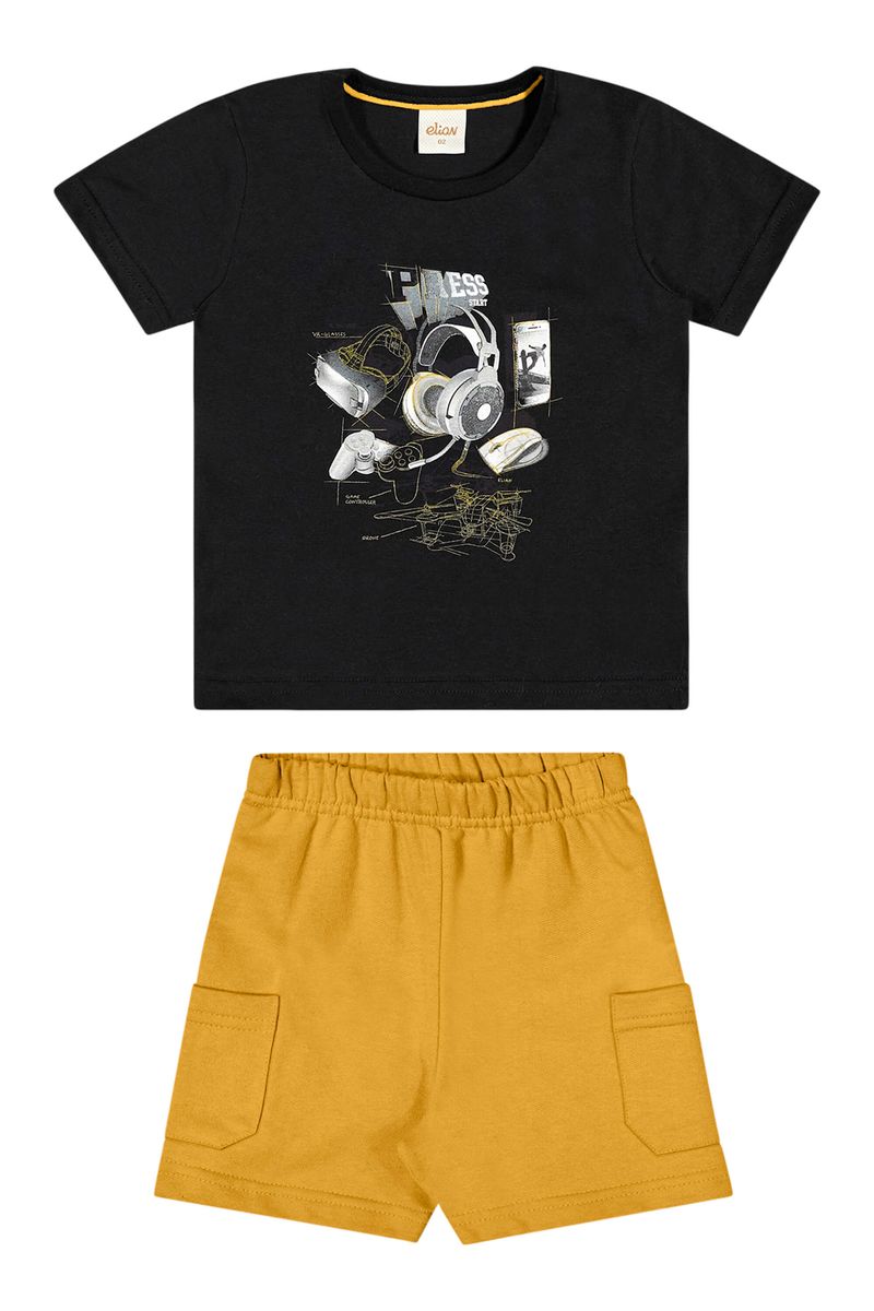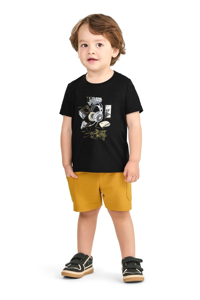 Conjunto Infantil Menino Bermuda Com Bolsos Elian Preto REF: 221559-7001
