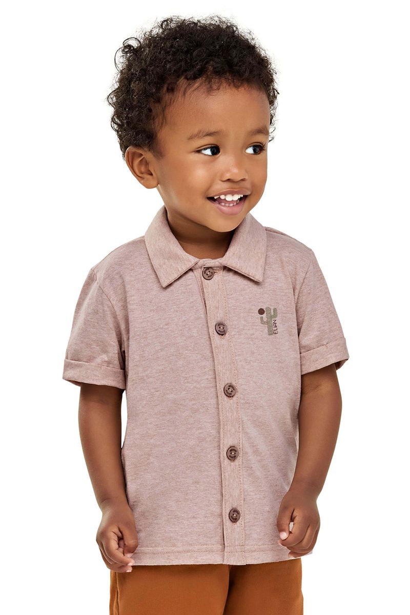 InfantilMeninosCamisas e Polos MeninosCamisa Infantil Menino Malha Mescla Elian Marrom