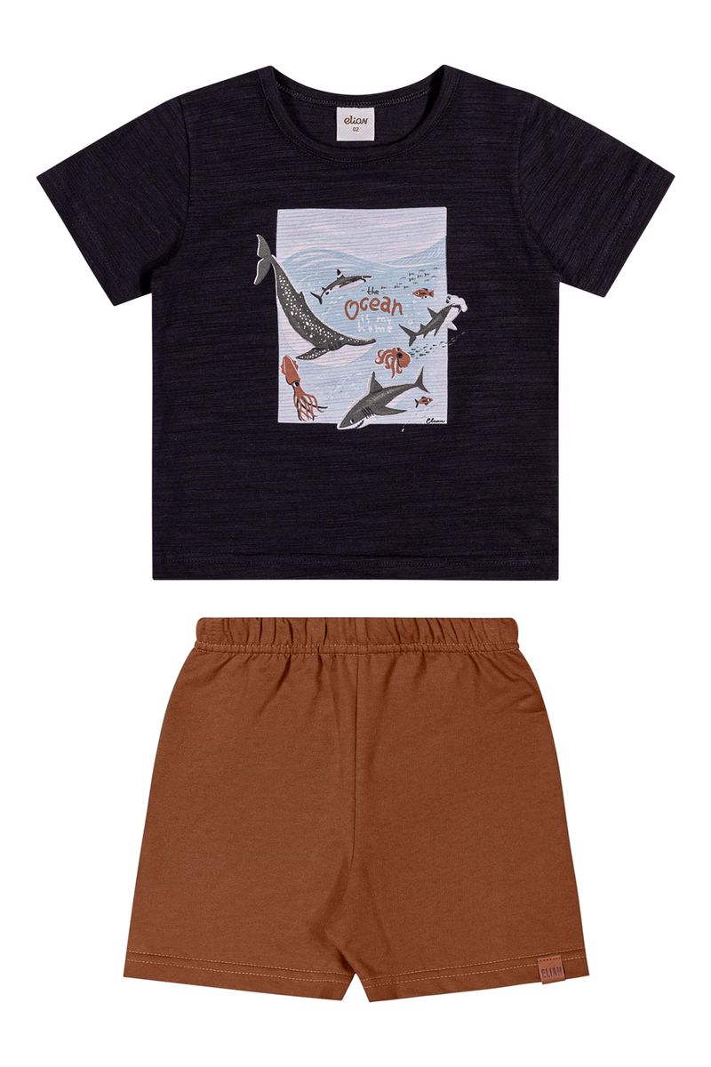 InfantilMeninosConjuntos MeninosConjunto Infantil Menino Malha Flamê Oceano Elian Preto