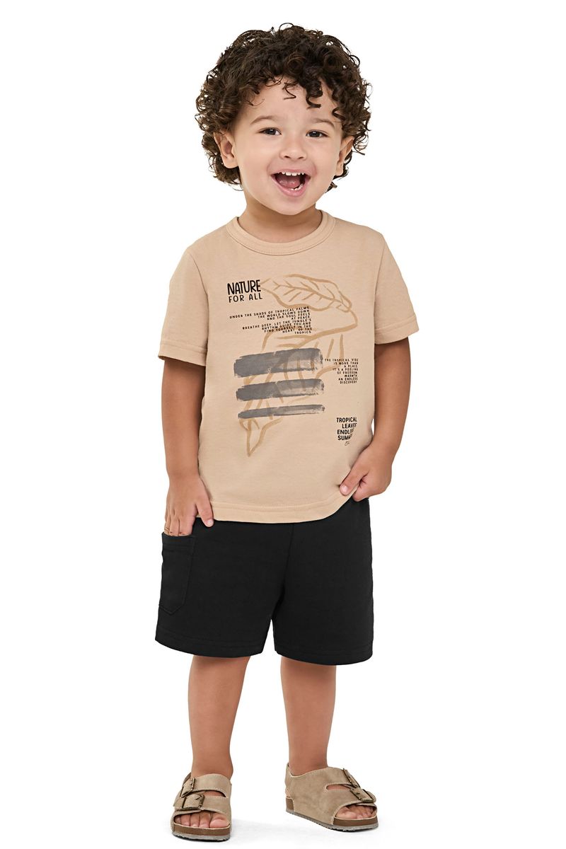 • Conjunto composto por camiseta e bermuda • Feito em meia malha e moletinho • Estampa com tema natureza • Elástico no cós • Possui bolso lateral • Ideal para brincadeiras e passeios