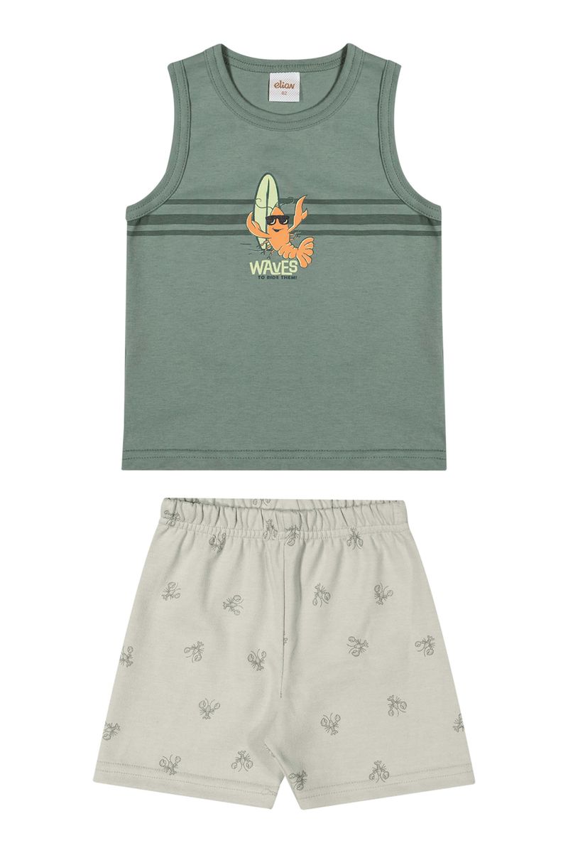 • Conjunto composto por regata e bermuda • Feito em meia malha e moletinho dublado • Estampa de lagostas • Elástico no cós • Ideal para brincadeiras e momentos de lazer