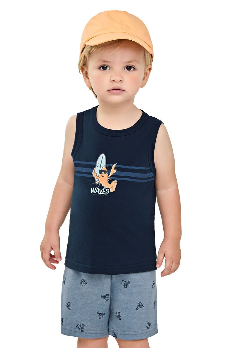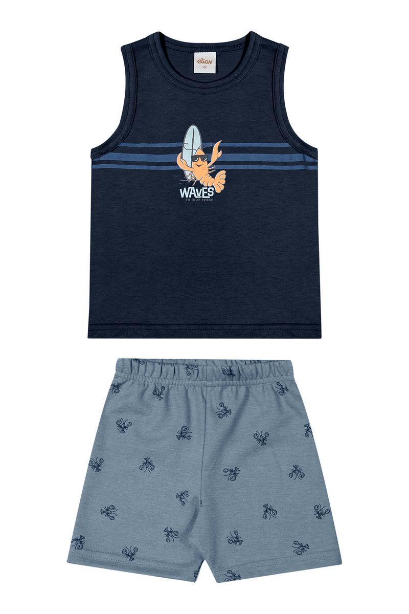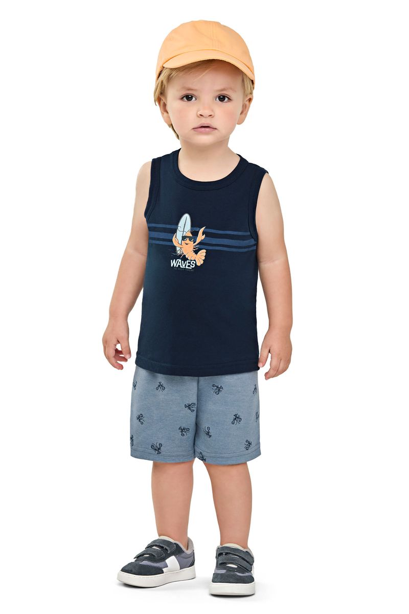 • Conjunto composto por regata e bermuda • Feito em meia malha e moletinho dublado • Estampa de lagostas • Elástico no cós • Ideal para brincadeiras e momentos de lazer