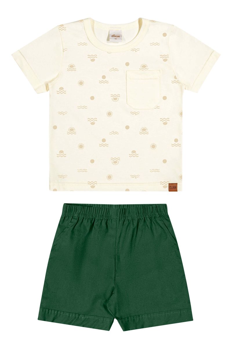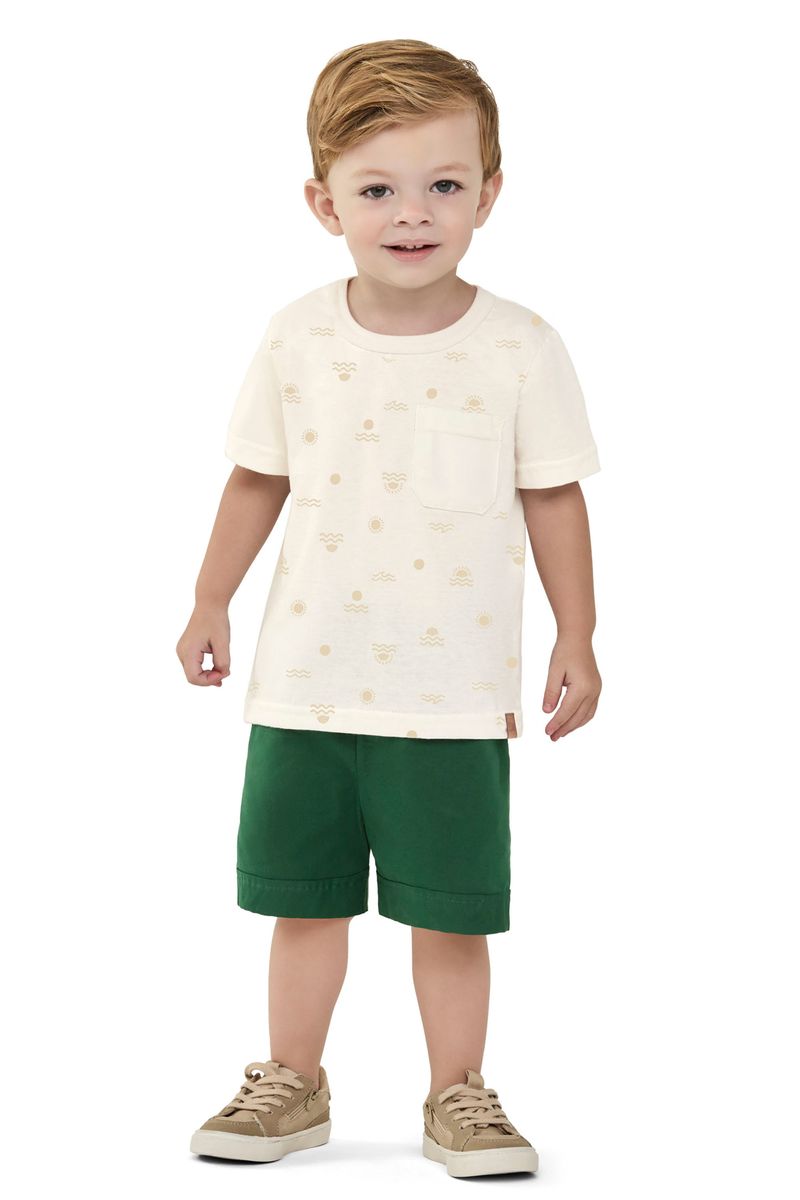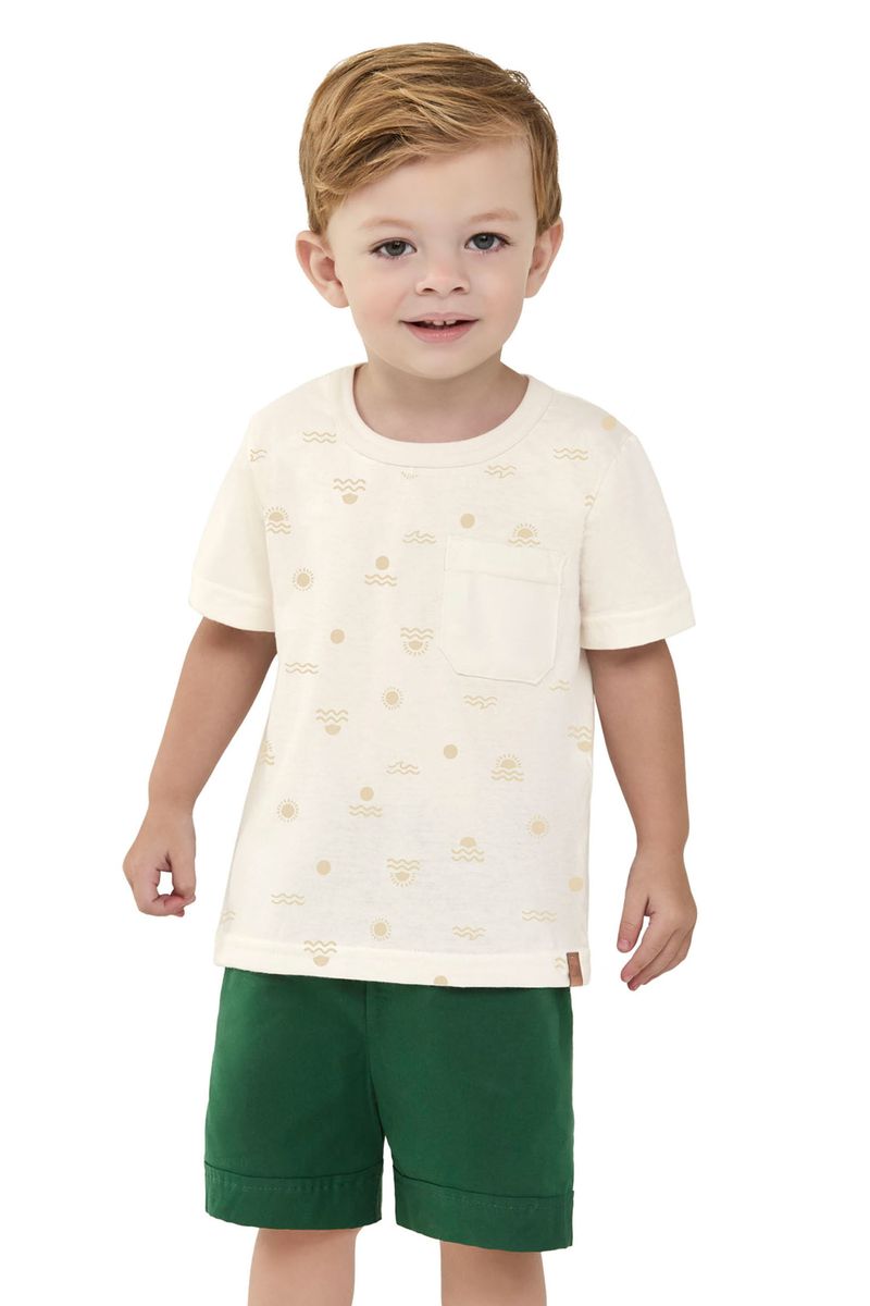 • Conjunto composto por camiseta e bermuda • Feito em meia malha e tecido tricoline com elastano • Com bolso frontal • Estampa com temática de praia • Elástico no cós • Ideal para momentos especiais e comemorações