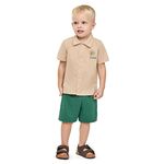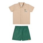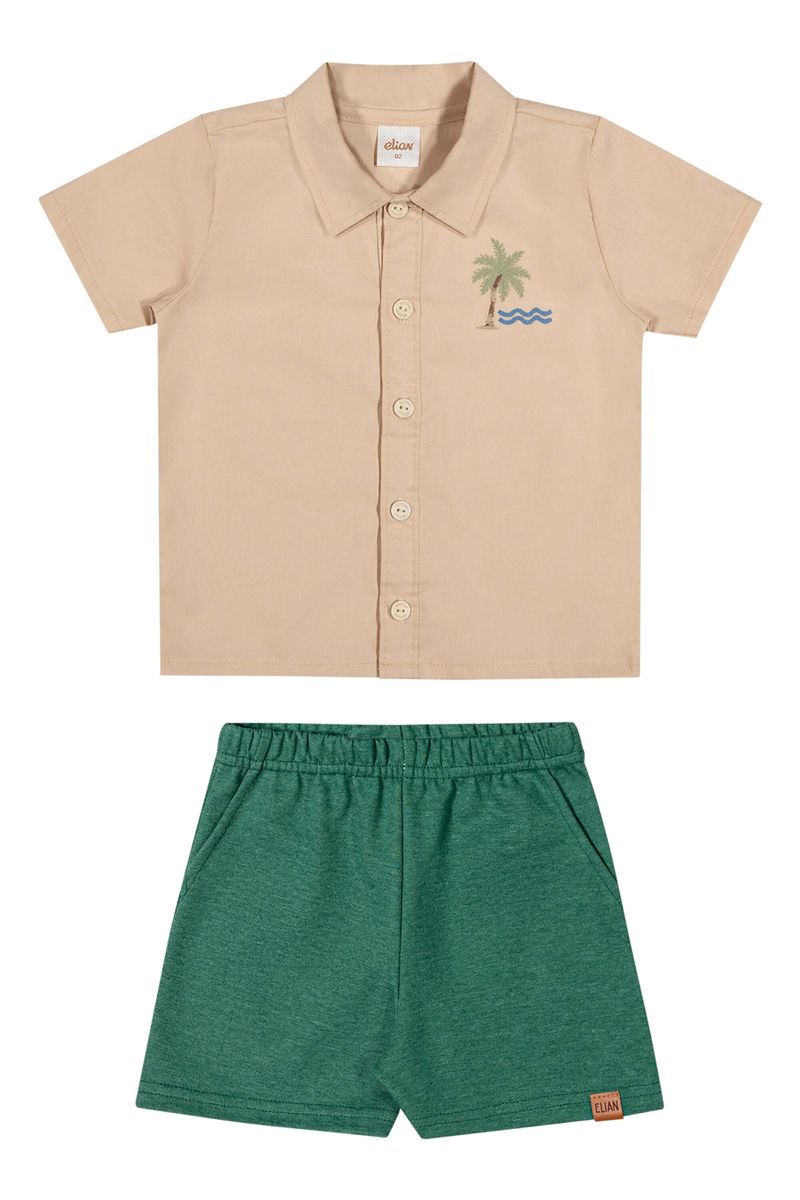 • Conjunto composto por camisa e bermuda • Feito em tecido tricoline com elastano e moletinho dublado • Abertura com botões • Possui bordado com temática de praia • Elástico no cós • Ideal para ocasiões especiais e passeios