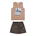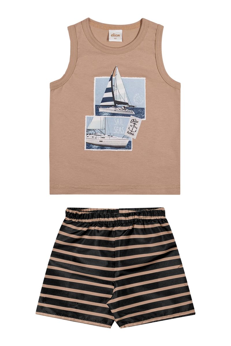 • Conjunto composto por regata e bermuda • Feito em meia malha e tactel com elastano • Estampa de veleiros • Elástico no cós • Ideal para momentos de diversão e dias de sol