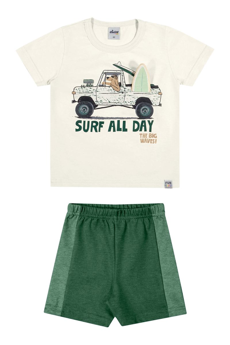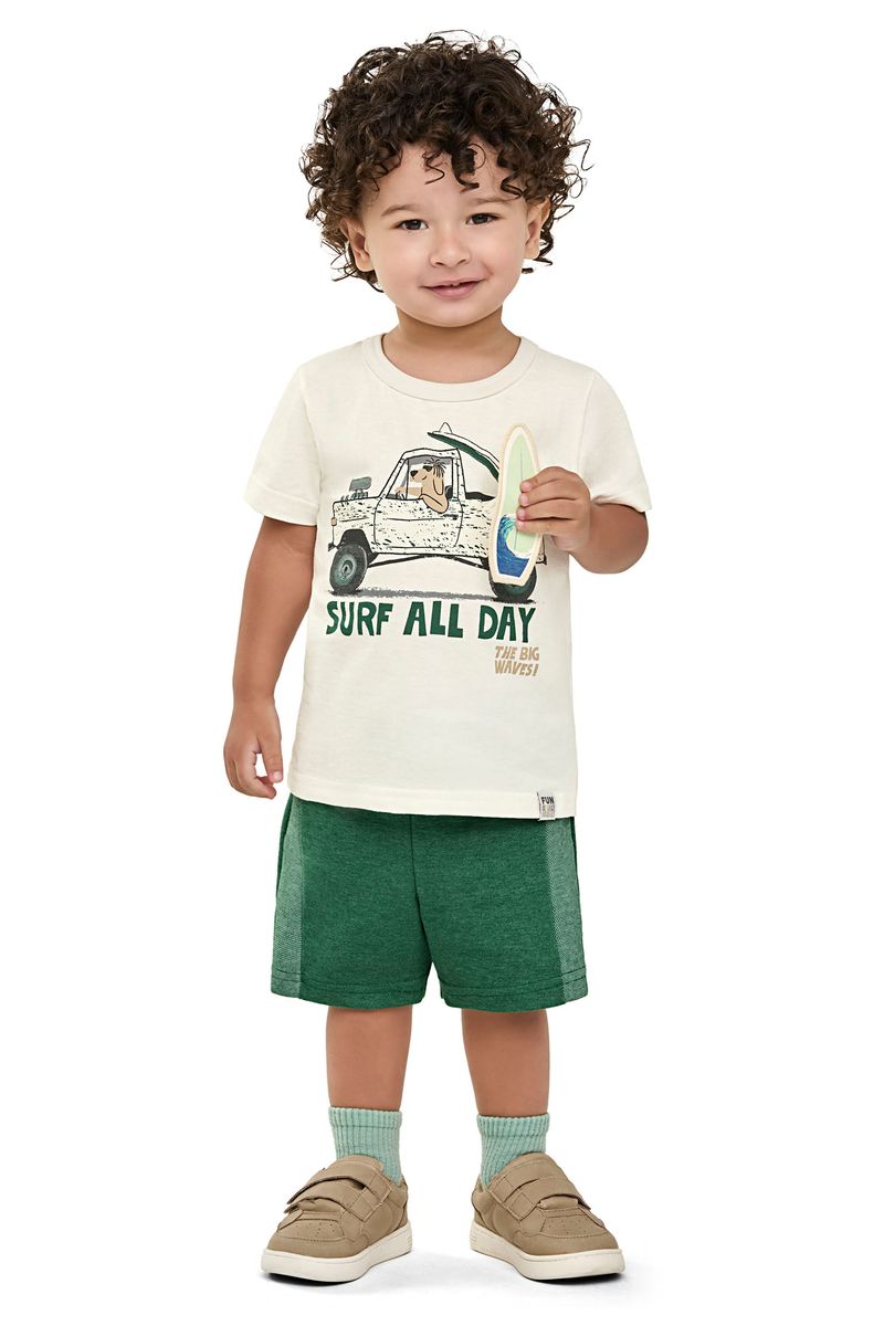 • Conjunto composto por camiseta e bermuda • Feito em meia malha e moletinho dublado • Estampa interativa que muda de cor • Aplique de prancha de surf removível • Elástico no cós • Recortes laterais texturizados • Ideal para passeios divertidos