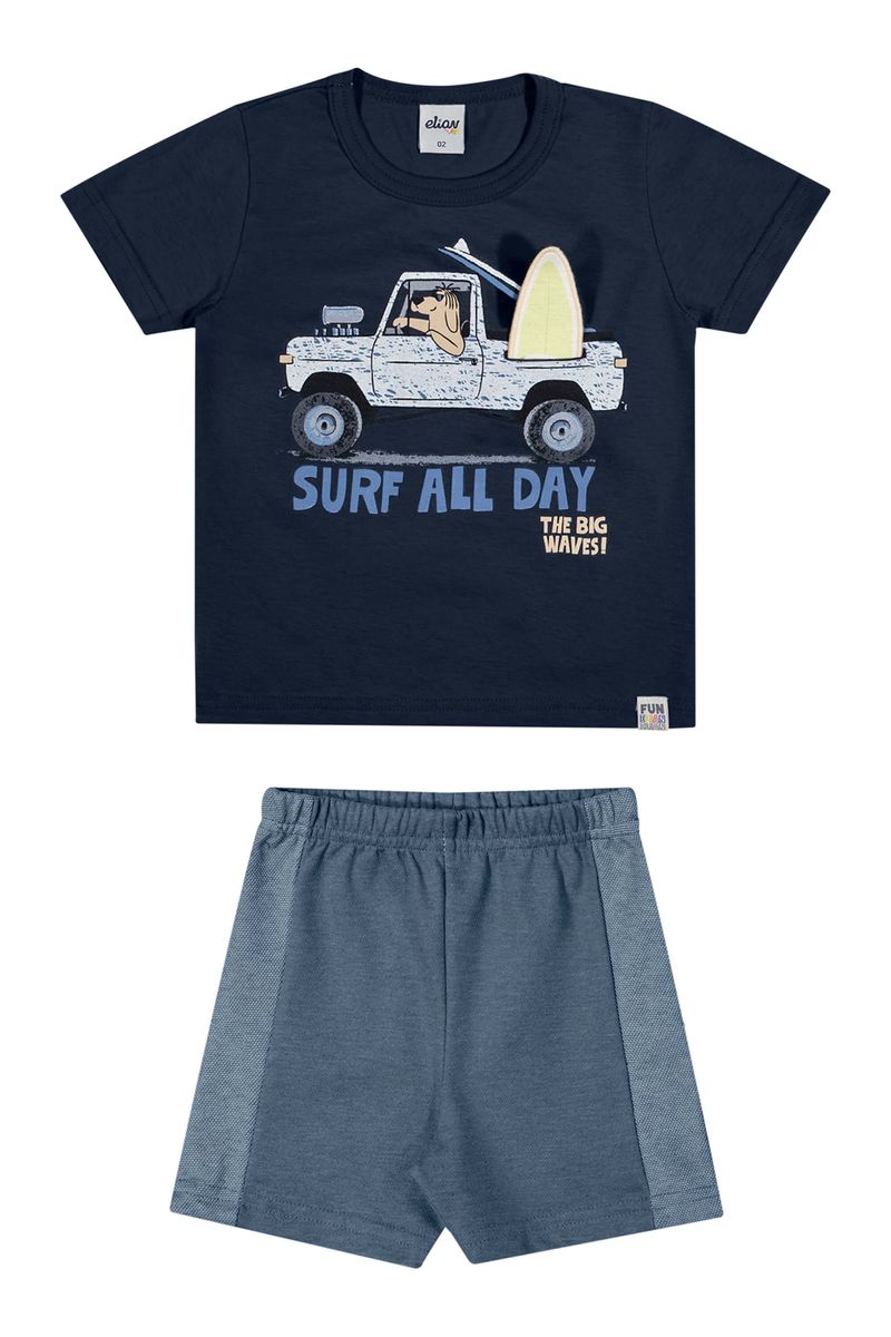• Conjunto composto por camiseta e bermuda • Feito em meia malha e moletinho dublado • Estampa interativa que muda de cor • Aplique de prancha de surf removível • Elástico no cós • Recortes laterais texturizados • Ideal para passeios divertidos