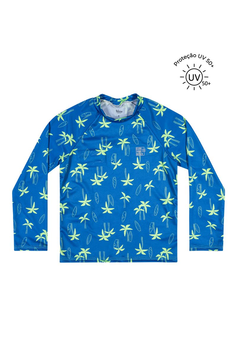 • Feito em malha de proteção UV +50 • Mangas longas raglan • Estampa em toda a peça • Etiqueta refletiva exclusiva • Ideal para a praia e piscina