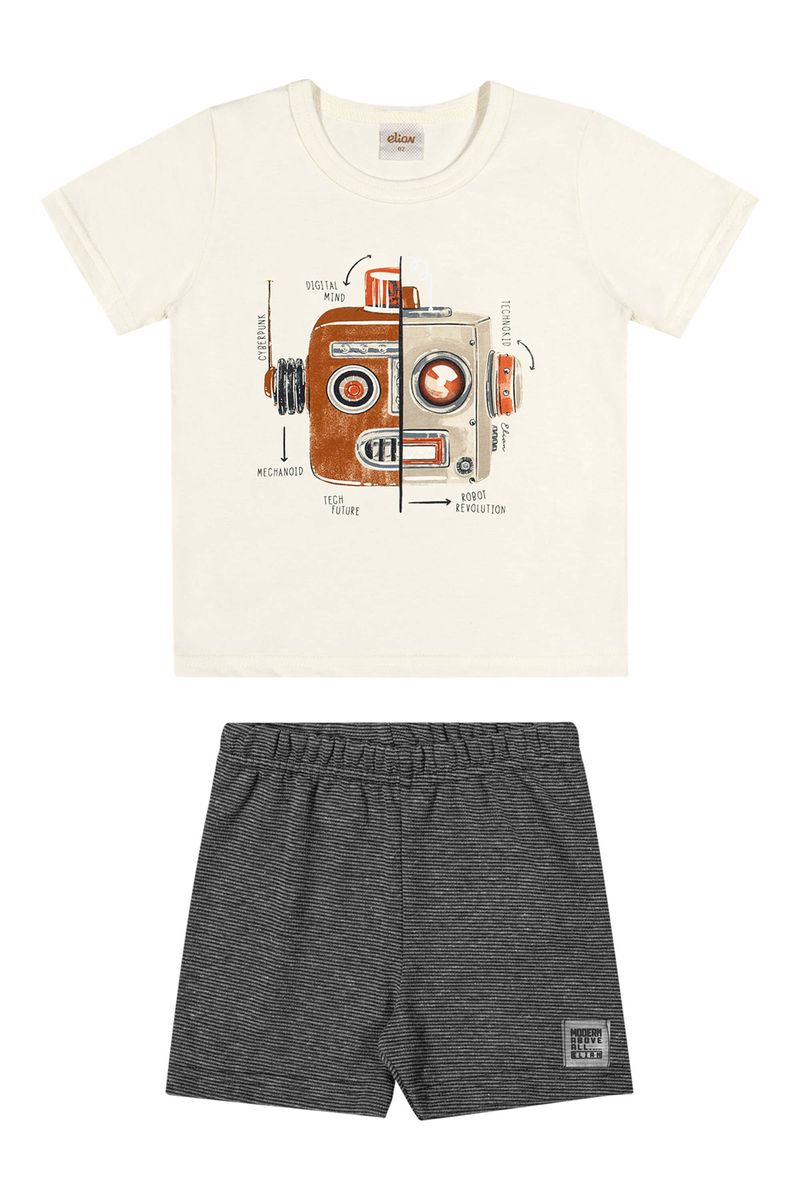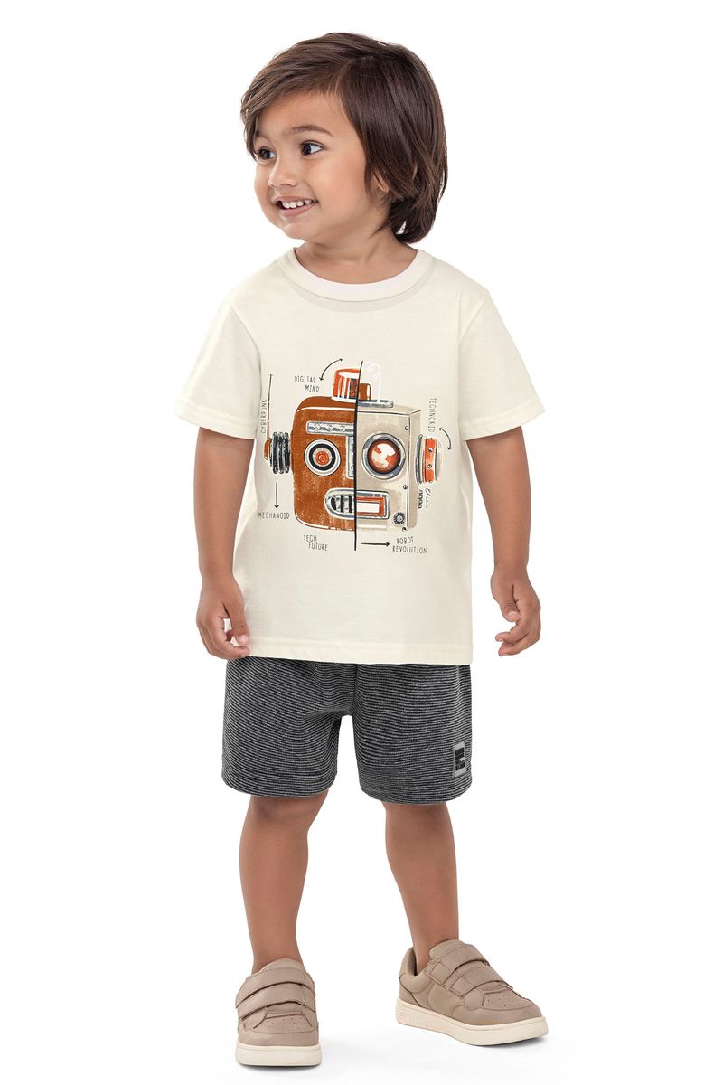• Conjunto composto por camiseta e bermuda • Feito em meia malha e moletom dublado • Possui mangas curtas • Possui estampa de robô • Possui elástico no cós • Ideal para momentos de lazer
