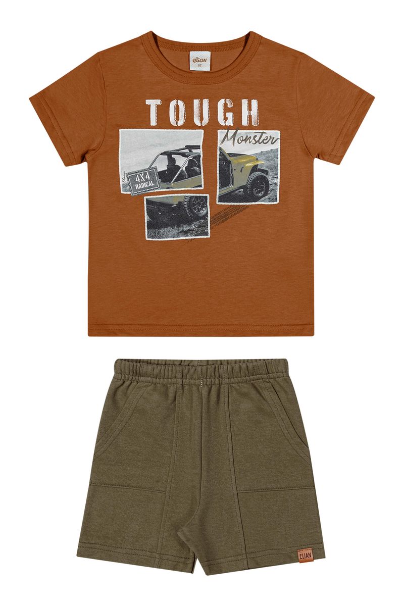 • Conjunto composto por camiseta e bermuda • Feito em meia malha e moletom sem felpa • Possui mangas curtas • Possui estampa de jipe 4x4 com detalhes em puff • Possui elástico no cós • Possui bolsos • Ideal para momentos de lazer e dia a dia