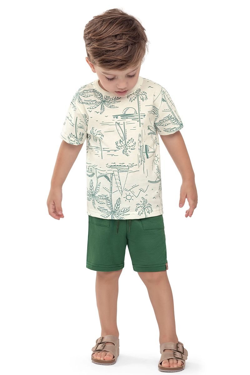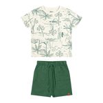 • Conjunto composto por camiseta e bermuda • Feito em meia malha e moletom sem felpa • Possui mangas curtas • Possui estampa tropical • Possui elástico no cós • Possui bolsos laterais • Ideal para dias ensolarados