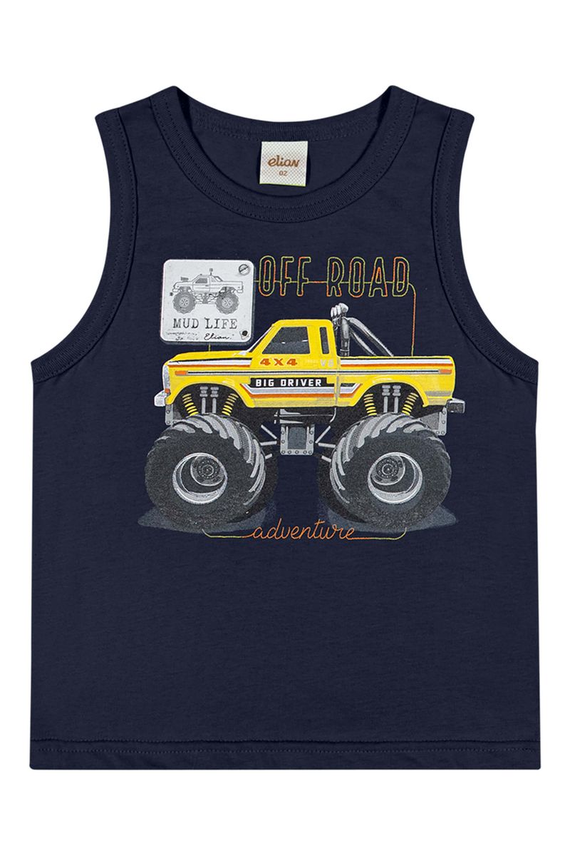 • Feita em meia malha • Possui modelagem tradicional • Possui estampa de monster truck com detalhes em puff • Ideal para dias quentes e passeios