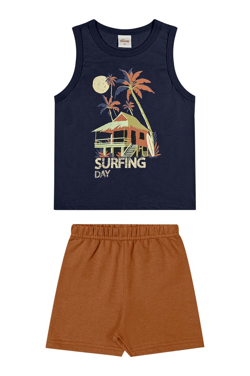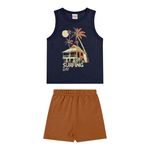 InfantilMeninosConjuntos MeninosConjunto Infantil Menino Regata Estampada Elian Azul
