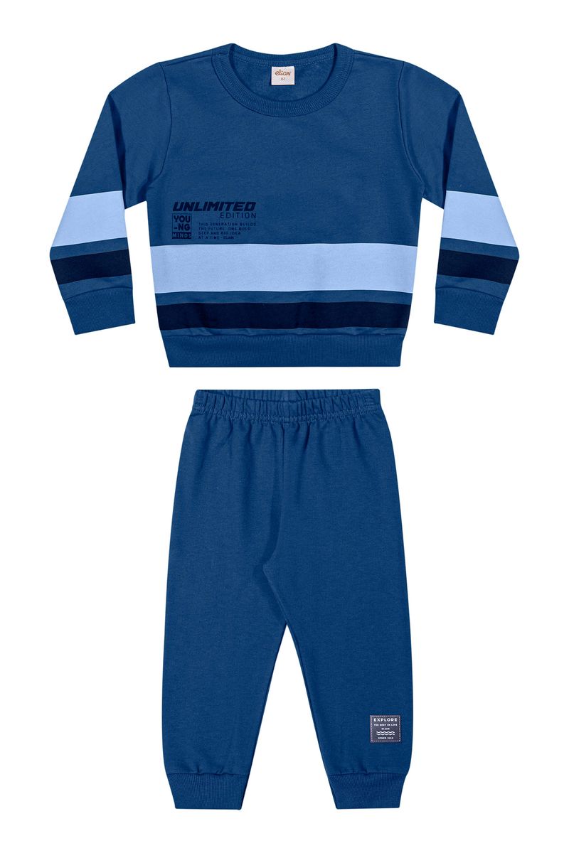 • Conjunto composto por blusão e calça • Feito em moletom felpado • Possui mangas longas • Estampa com listras • Elástico no cós • Ideal para passeios e momentos de lazer