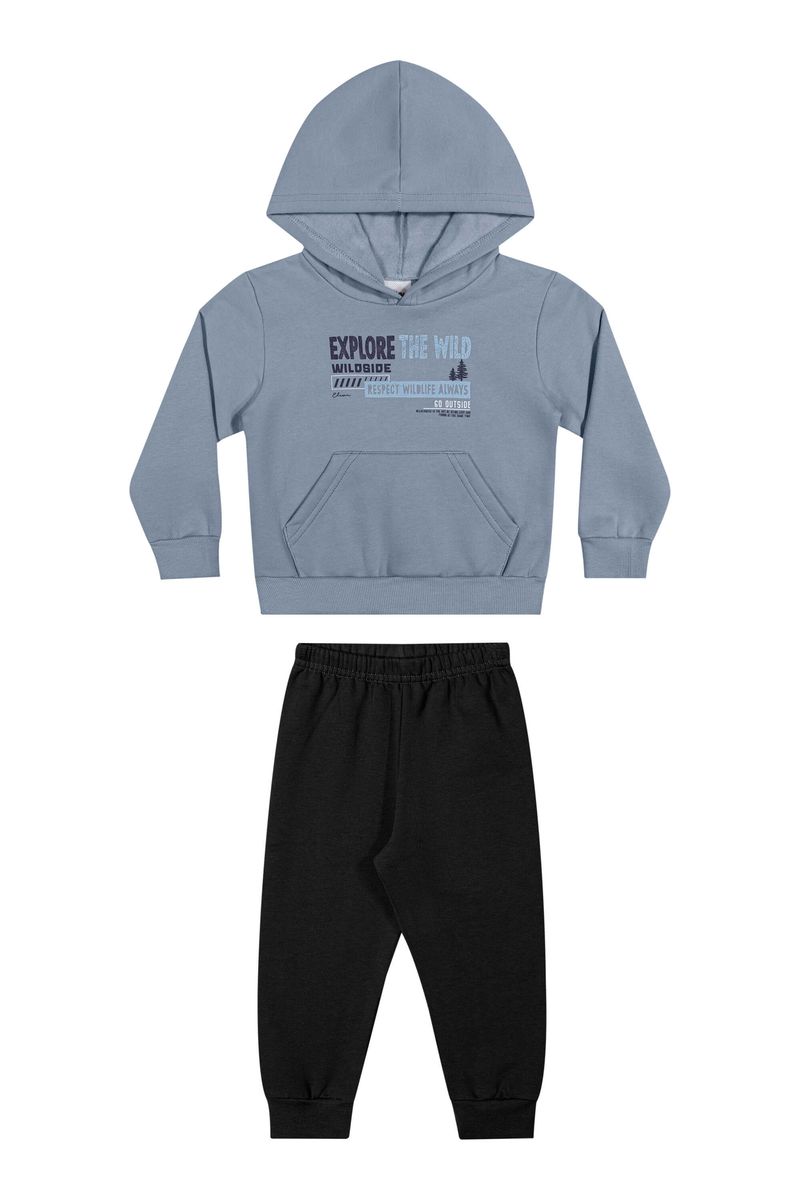 • Conjunto composto por blusão e calça • Feito em moletom felpado • Possui mangas longas • Possui capuz e bolso • Estampa com puff • Elástico no cós • Ideal para passeios ao ar livre