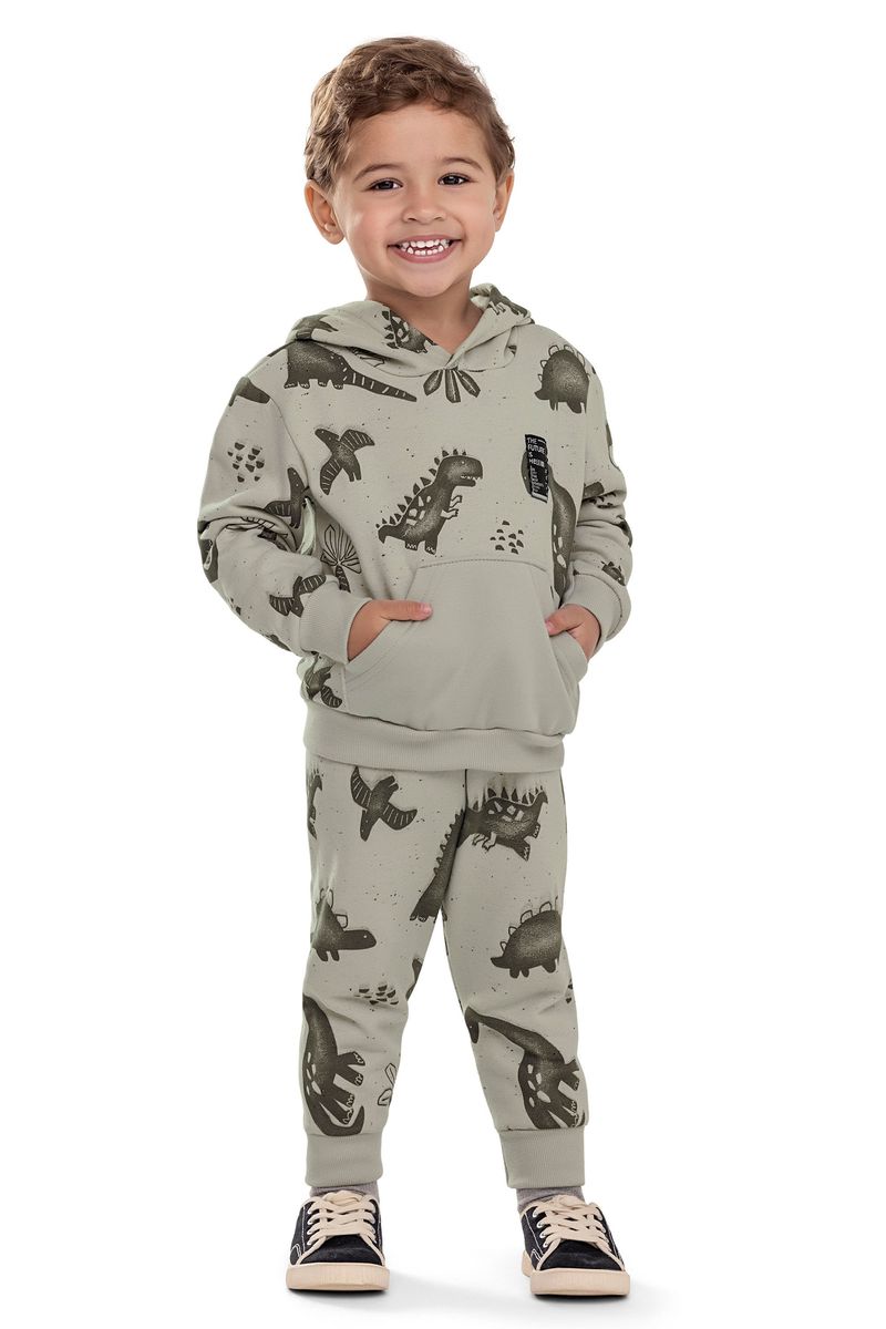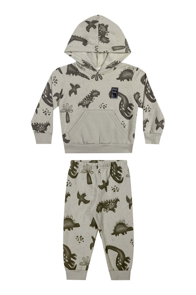 • Conjunto composto por blusão e calça • Feito em moletom botonê felpado • Possui mangas longas • Possui capuz e bolso • Estampa de dinossauros • Elástico no cós • Ideal para passeios e momentos de lazer