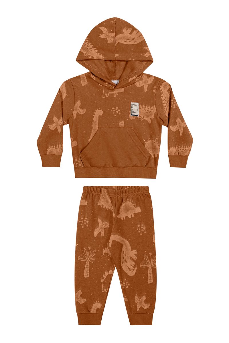 • Conjunto composto por blusão e calça • Feito em moletom botonê felpado • Possui mangas longas • Possui capuz e bolso • Estampa de dinossauros • Elástico no cós • Ideal para passeios e momentos de lazer