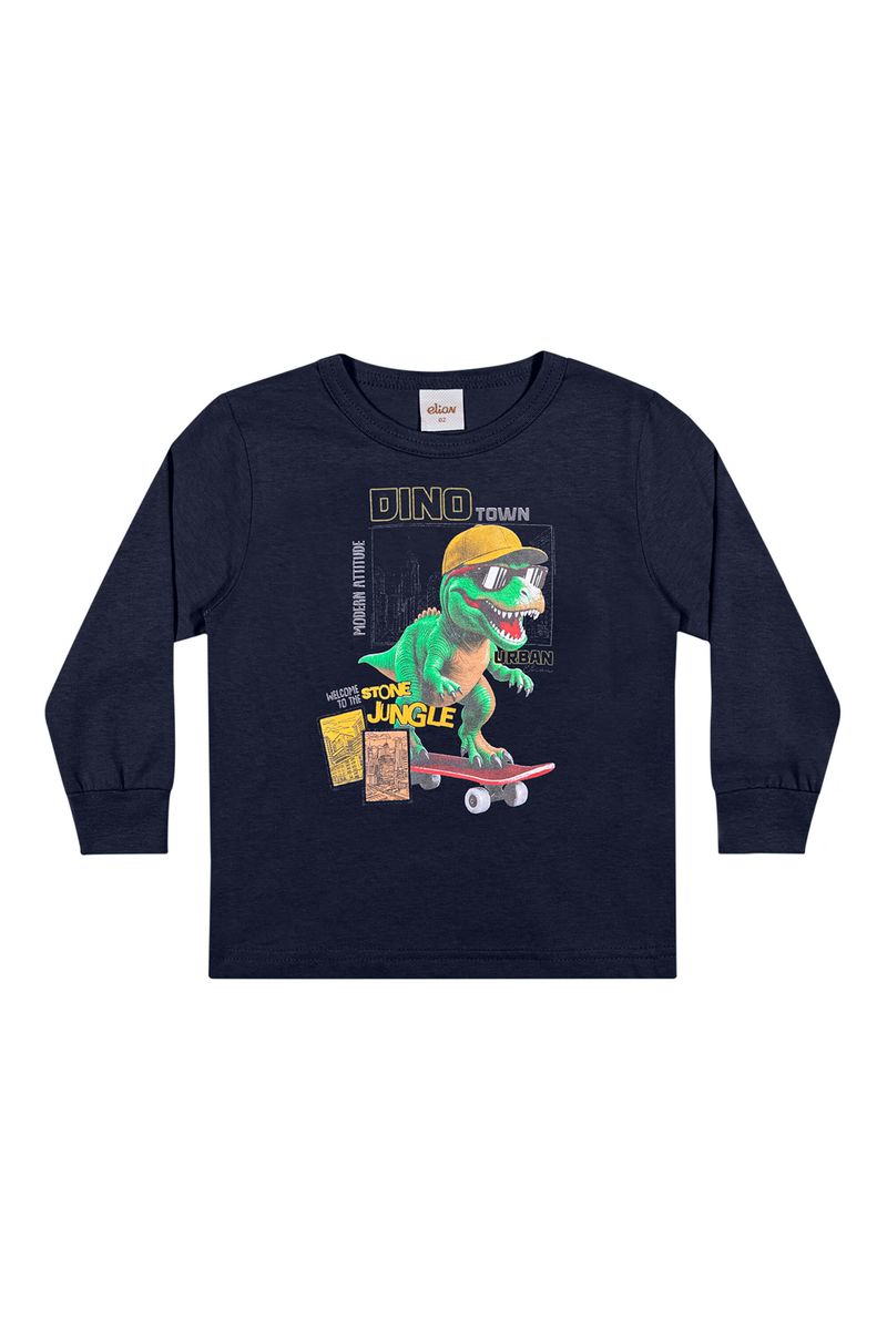 • Feita em meia malha • Possui mangas longas • Estampa de dinossauros • Ideal para o dia a dia e momentos de diversão