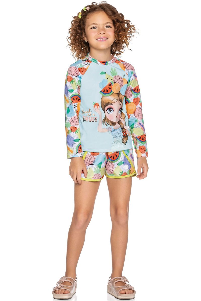 Blusa Infantil Menina Beach Estampada com Proteção UV Elian Branco REF: 231797-2001