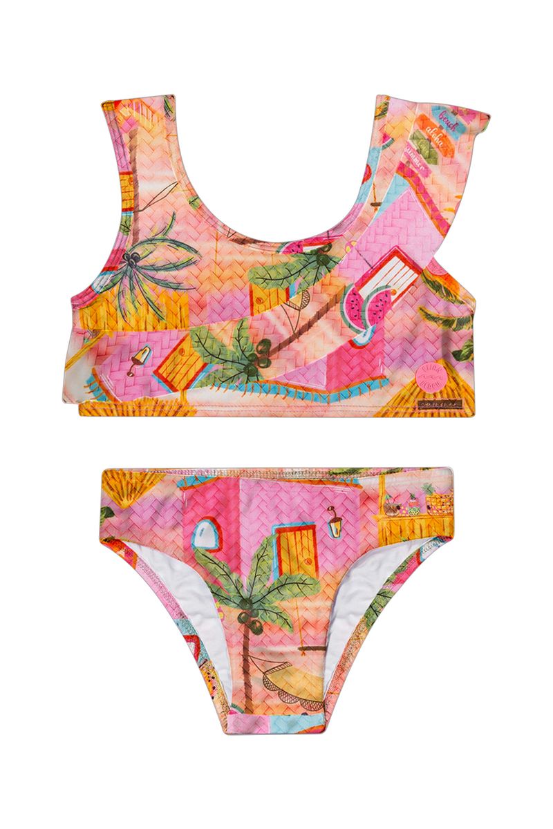 Biquini Infantil Menina Babado Moda Praia Elian Rosa REF: 231951-4526