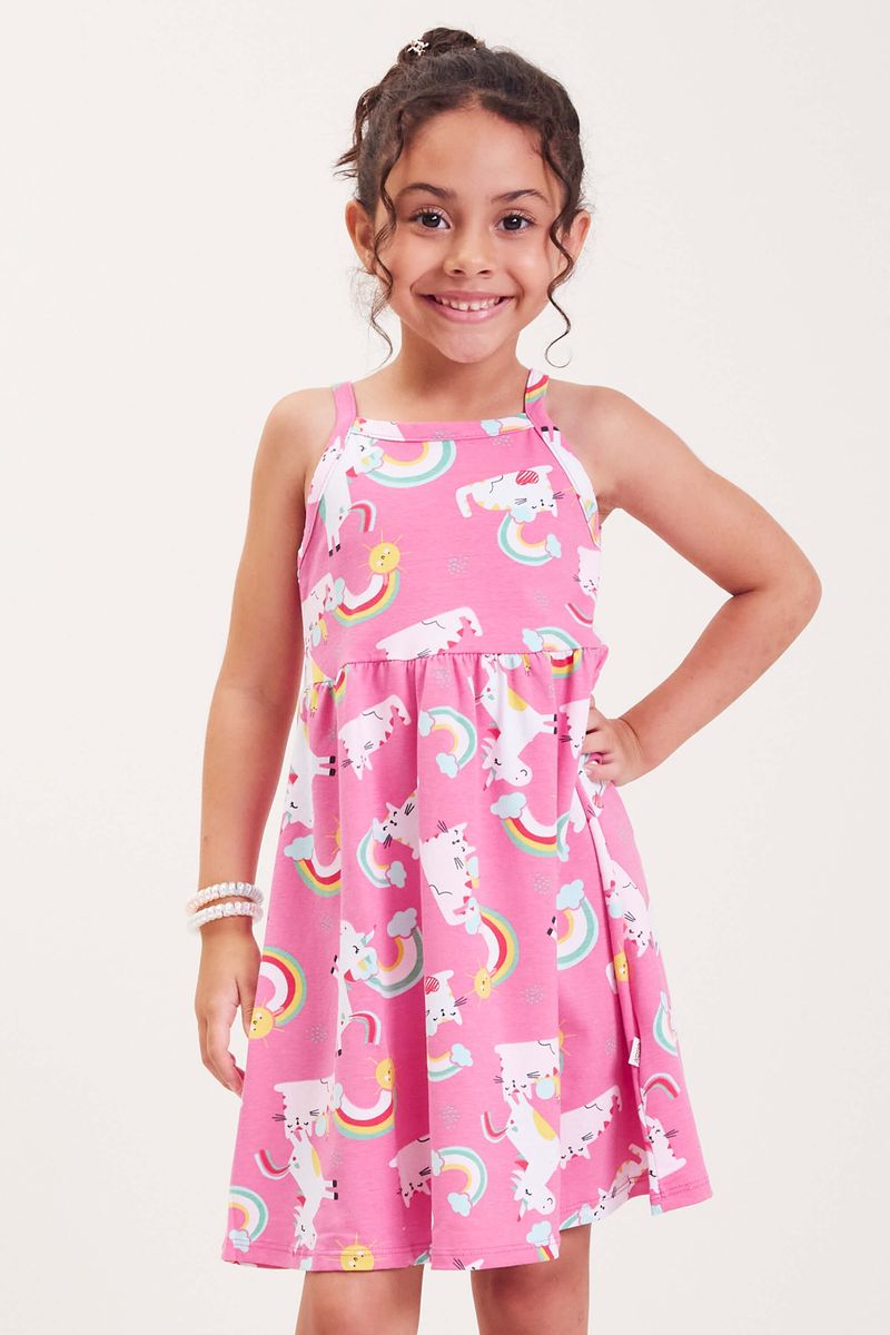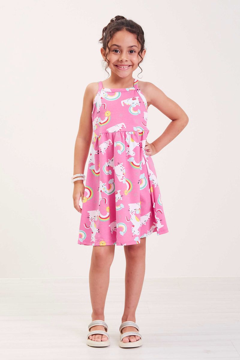 InfantilMeninasVestidos MeninasVestido Infantil Menina Estampado Elian Rosa Claro