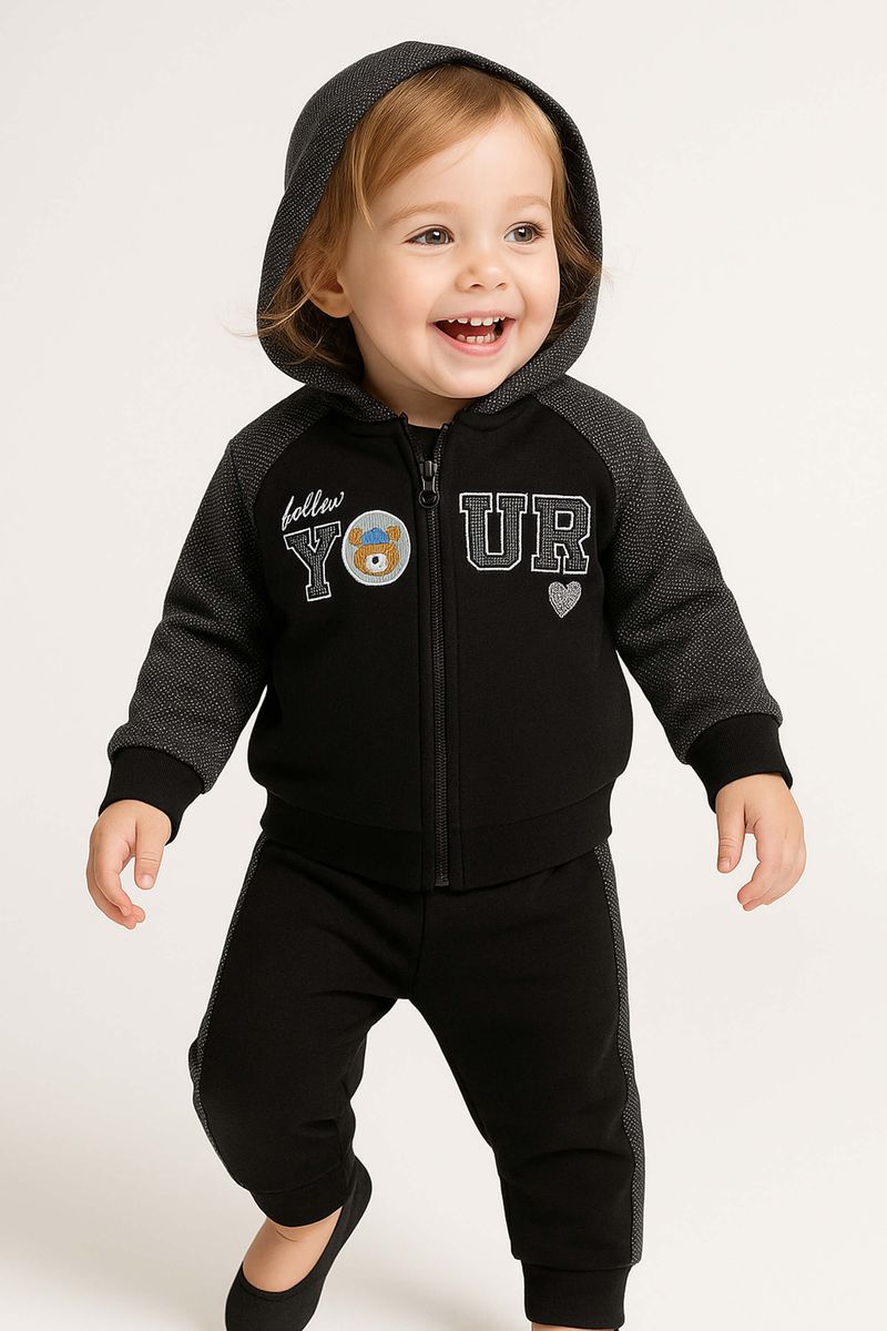 Conjunto Infantil Menina Longo Com Capuz Elian Preto REF: 232088-7001
