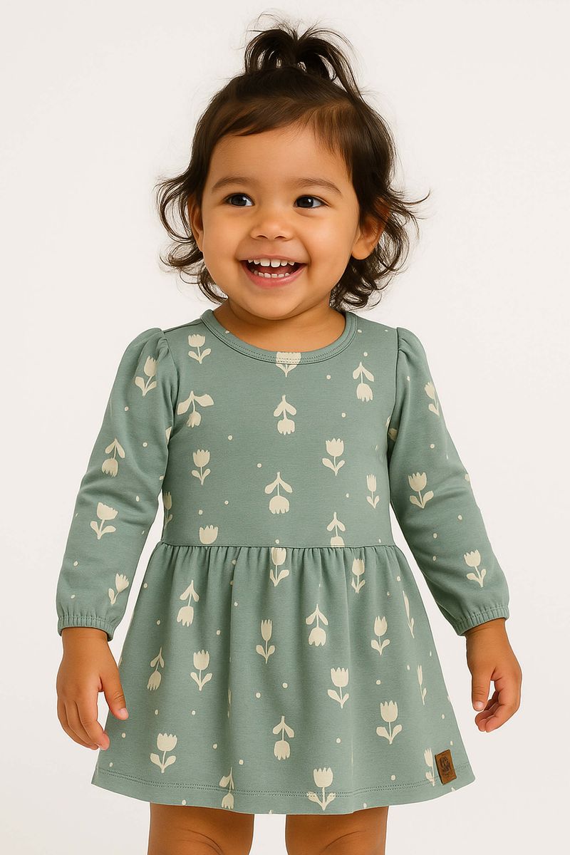 InfantilMeninasVestidos MeninasVestido Infantil Menina Manga Longa Floral Elian Verde