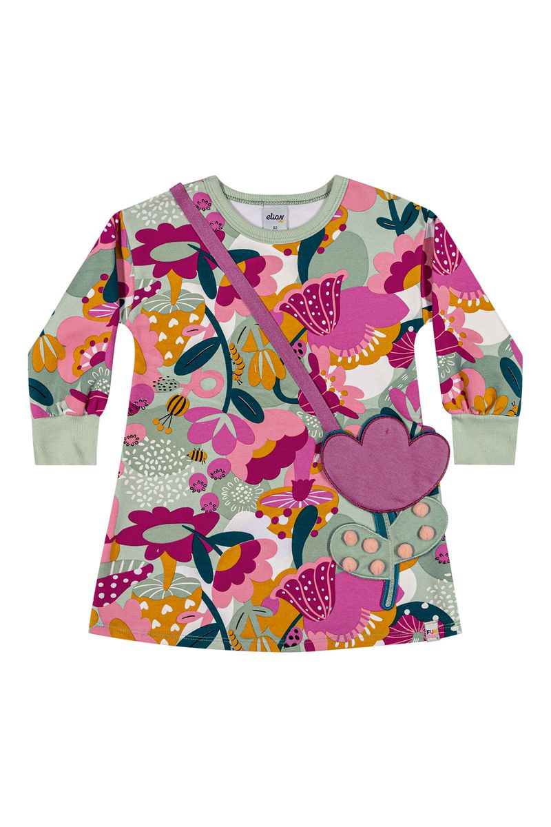 Vestido Infantil Manga Longa Floral Com Bolsa Elian Verde REF: 232107-5664