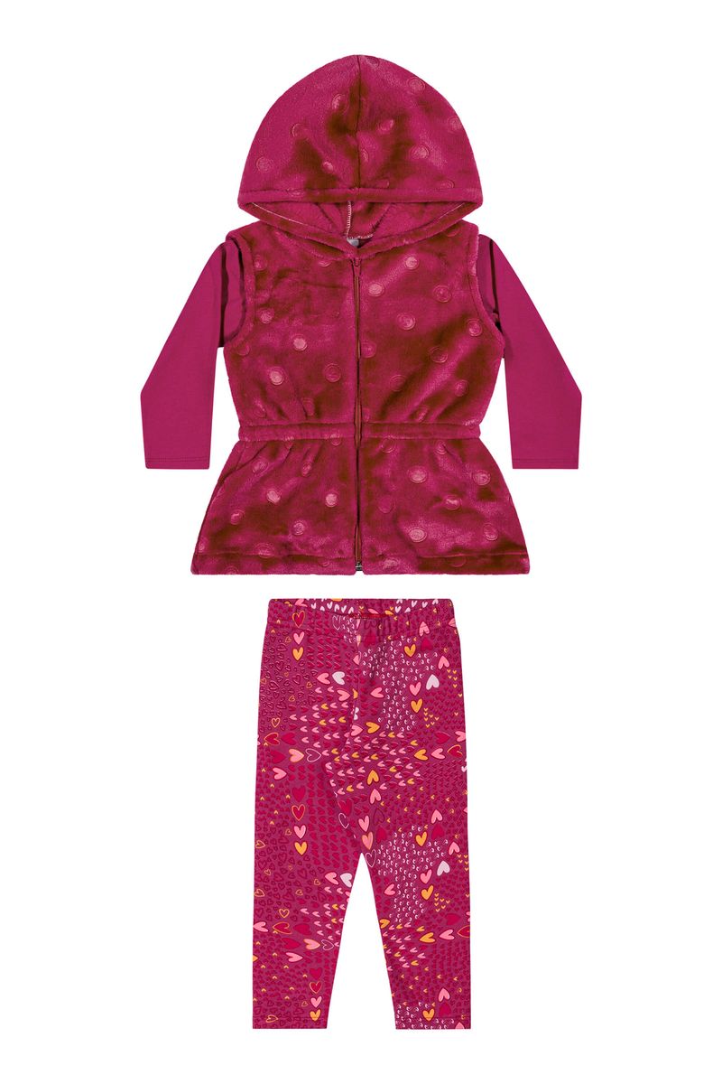 Conjunto Infantil Menina Com Colete Peluciado Elian Rosa REF: 232110-4180