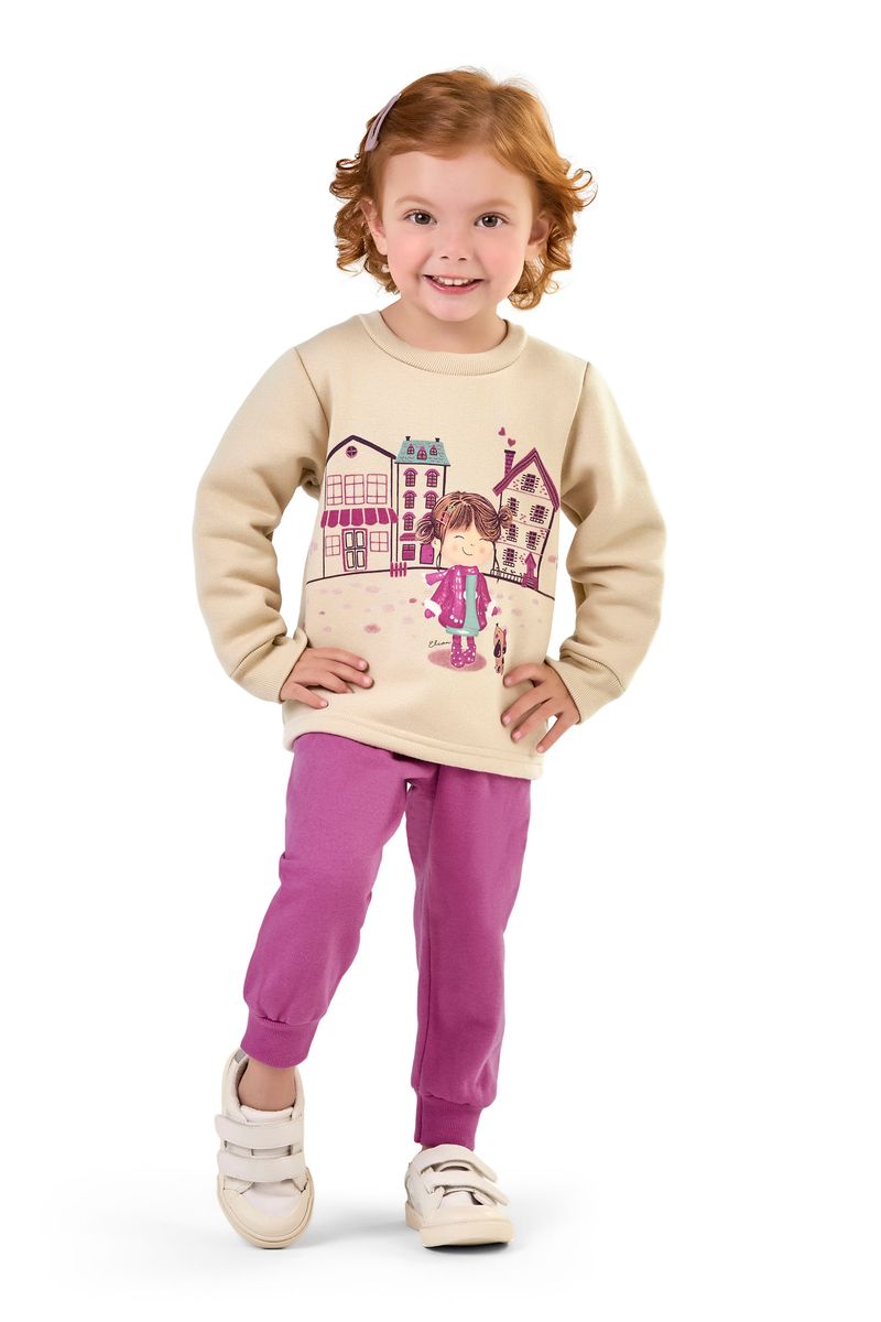 InfantilMeninasConjuntos MeninasConjunto Infantil Menina Blusão Estampado e Calça Elian Bege