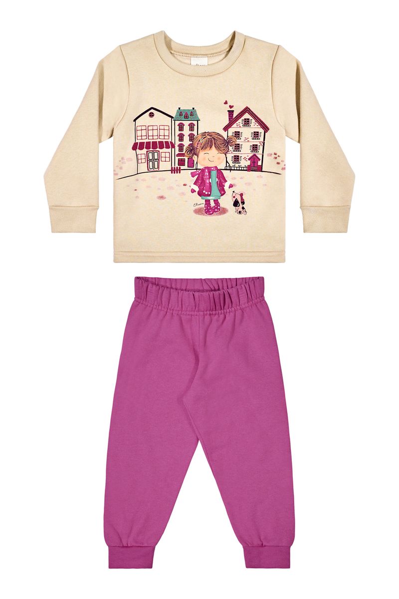 Conjunto Infantil Menina Blusão Estampado e Calça Elian Bege REF: 232112-2057