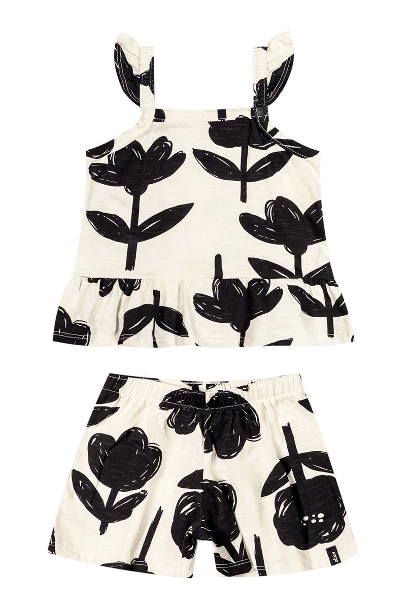 InfantilMeninasConjuntos MeninasConjunto Infantil Menina Floral Bicolor Elian Bege