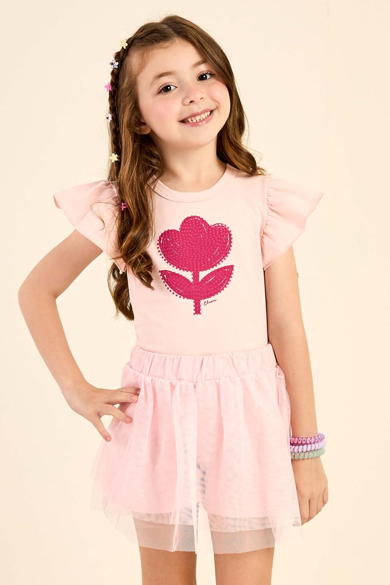 Conjunto Infantil Menina Blusa e Saia Tule Elian Rosa REF: 232127-4954