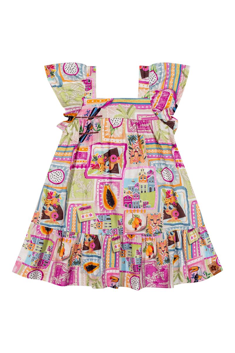 Vestido Infantil Menina Estampa Tropical Elian Bege REF: 232132-2037