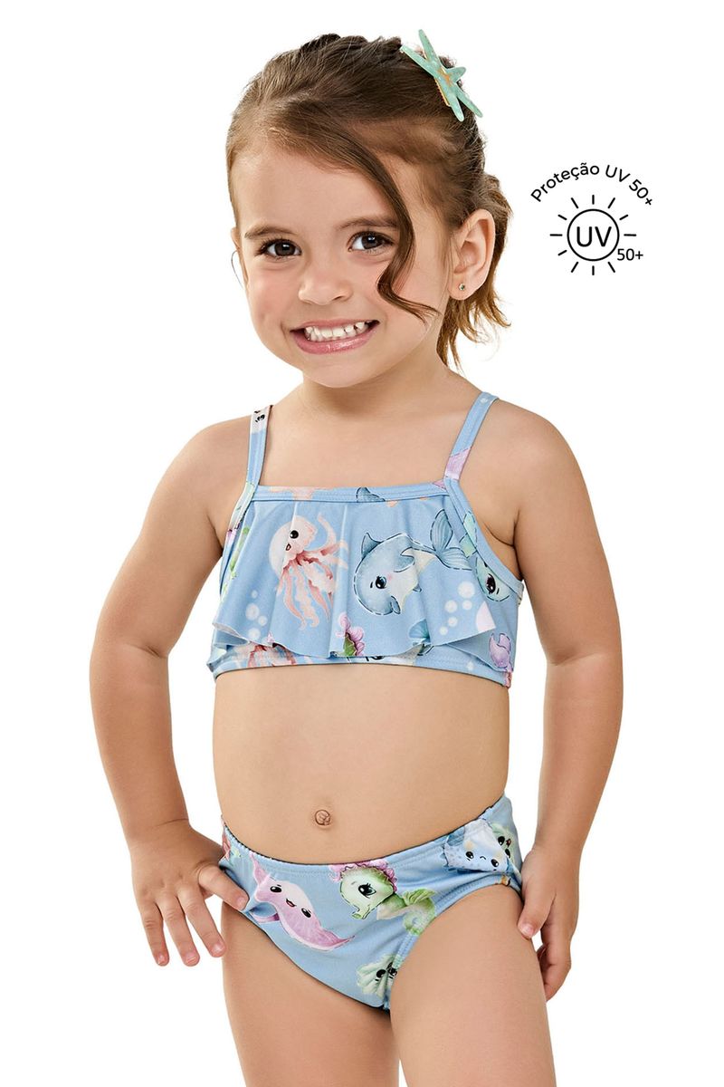 Biquíni Infantil Menina Estampado Com Proteção Solar Elian Azul REF: 232149-6026